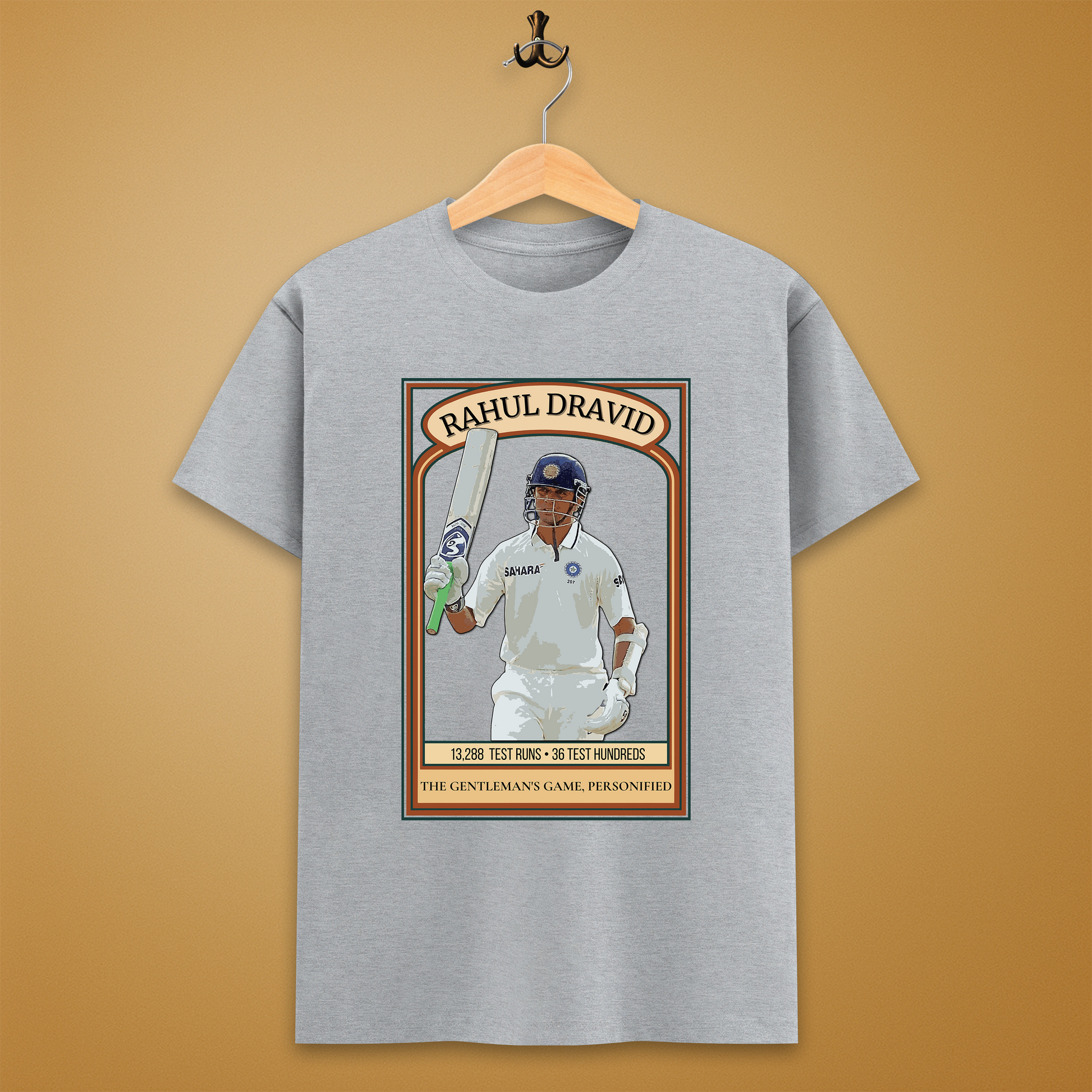 Celebrate Rahul Dravid, the Wall of Indian cricket, with this exclusive vintage-style player card tee. Designed for cricket fans, collectors, and lovers of timeless style.